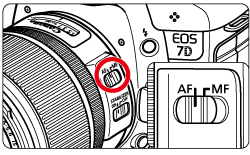 1. 將鏡頭上的對焦模式開關置于 < AF >。
