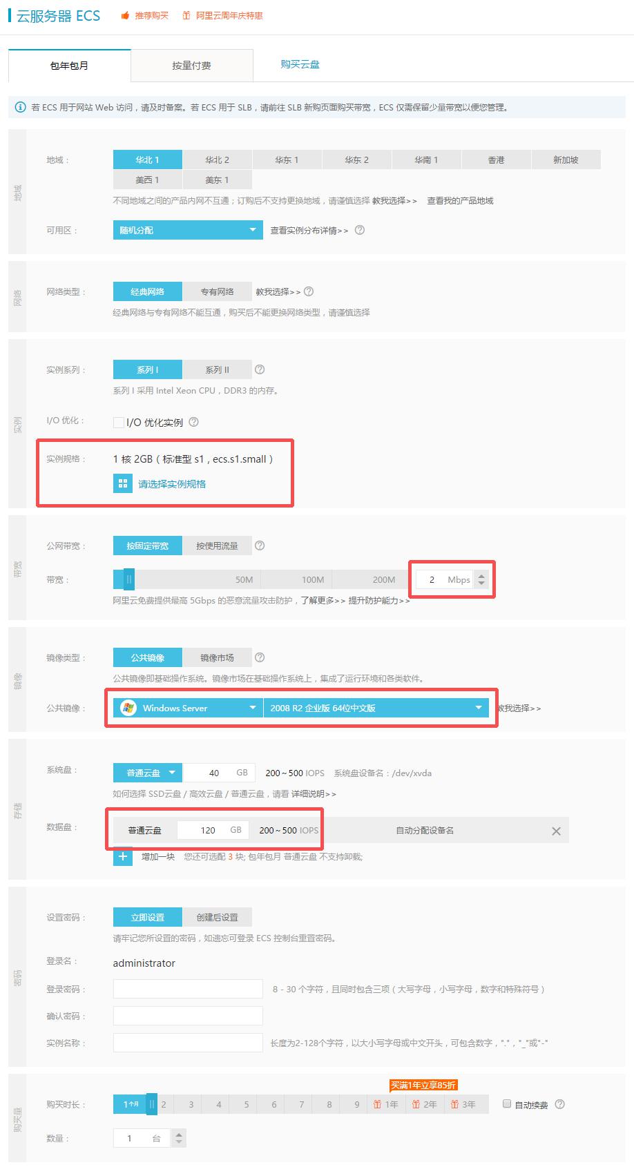 實(shí)例規(guī)格:就是CPU和內(nèi)存,普通小站1核1GB或2GB足矣,如果不能選擇1核1GB或2GB,看是否勾選了上面的I/O優(yōu)化,或者地域上是否選擇華北等。