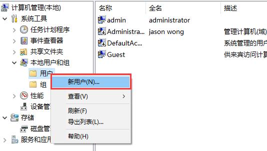 1. 右鍵我的電腦,選擇“管理”→“本地用戶和組”→“用戶”,右鍵“新建用戶”