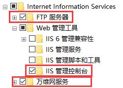 2. 展開Internet Information Services結(jié)構(gòu),勾選:FTP服務(wù)器(全選)、IIS管理控制臺、萬維網(wǎng)服務(wù)(全選)